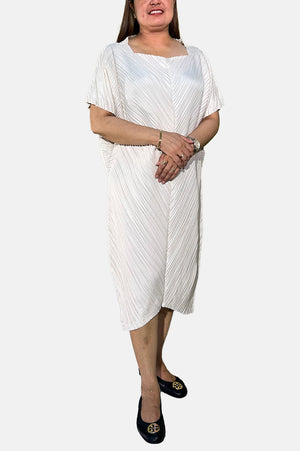 Cream ISSEY MIYAKE FH618 Women Short Sleeve Dress