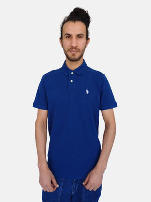 تي شيرت بولو رجالي سادة من رالف لورين باللون الأزرق، مقاس صغير، بقصة ضيقة