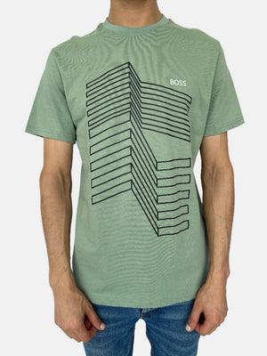 تي شيرت BOSS باللون الأخضر والأسود برقبة دائرية