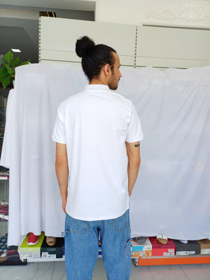تي شيرت بولو رجالي من BURBERRY بتصميم شريط أمامي أبيض اللون