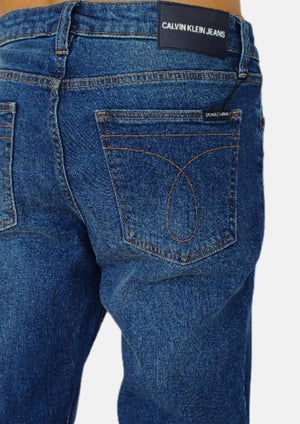 صُممت هذه الجينز الضيقة باللون الأزرق الداكن من قبل شركة كالفن كلاين بخبرة وحرفية عالية، وتوفر ملاءمة أنيقة ومريحة. مصنوعة من مواد عالية الجودة وخياطة احترافية، هذه الجينز تناسب شكل جسمك وتوفر الأناقة والراحة. مثالية لأي مناسبة، هذه الجينز ضرورية لأي خزانة ملابس عصرية.