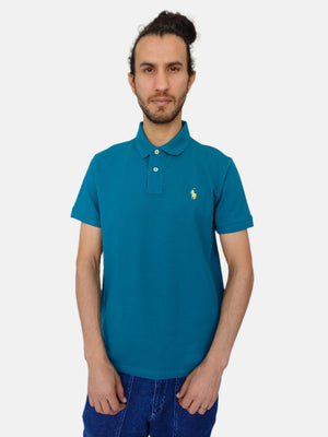 تي شيرت بولو رجالي سادة من رالف لورين باللون الأخضر بقصة ضيقة صغيرة