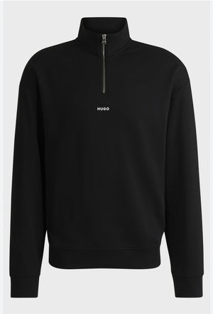 Hugo Black Slim Fit Quarter(1/4)-Zip Sweatshirt White Logo 50525881