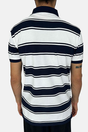 تي شيرت بولو مخطط باللون الأبيض والأزرق من لاكوست