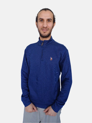 سويت شيرت رجالي من USPolo Assn. أزرق داكن بسحاب ربعي ورقبة دائرية