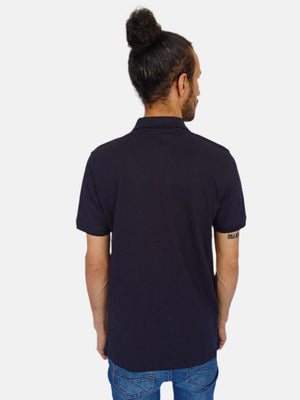 تي شيرت بولو رجالي من Burberry بتصميم شريط أمامي وياقة باللون الأزرق البحري