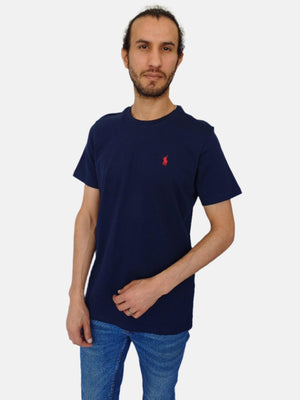 تي شيرت رجالي من رالف لورين باللون الأزرق الداكن برقبة دائرية مقاس صغير