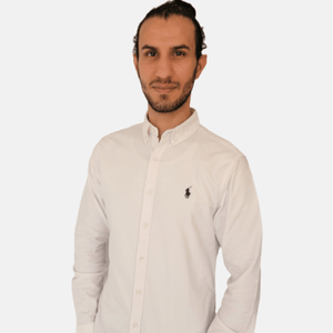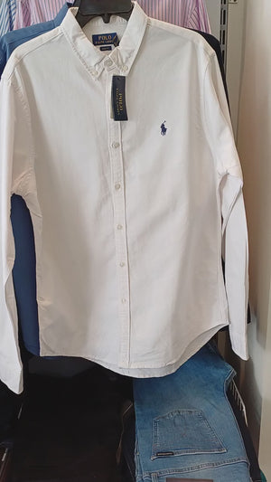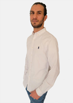 قميص رجالي رالف لورين أبيض سادة بقصّة Slim Fit مقاس صغير