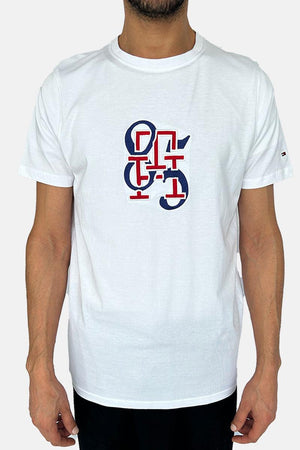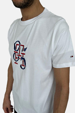 تي شيرت تومي هيلفيغر أبيض بياقة دائرية مقاس SS