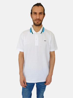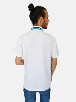 تي شيرت بولو مخطط باللونين الأبيض والأخضر والأزرق مقاس XL