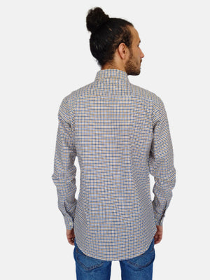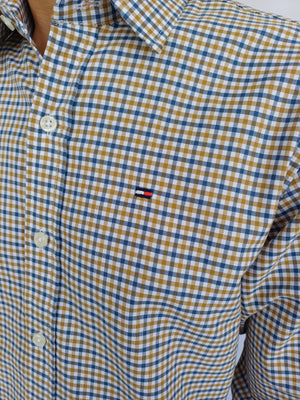 قميص تومي هيلفيغر للرجال منقوش باللون الأصفر والأزرق